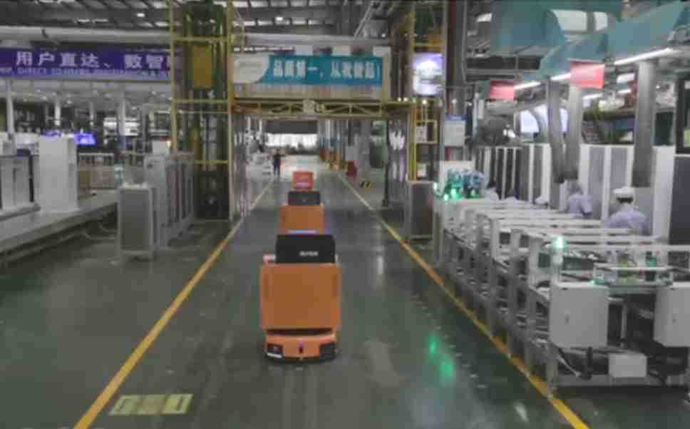 为车载冰箱物流配送打造的智能解决方案,,包含产中物流通过潜伏举升AMR搬运至线边,,,,产后成品物流智能仓储,,,,流程包含产中物流智能齐套入库,,线边安灯叫料AMR智能配送至线边,,,,成品入库、、、出库,,,,通过无人堆高车机器人,,,,智能仓储管理替代人工作业管理,,,,实现更高存储、、、更高效率、、、更具柔性化的解决方案。。。。